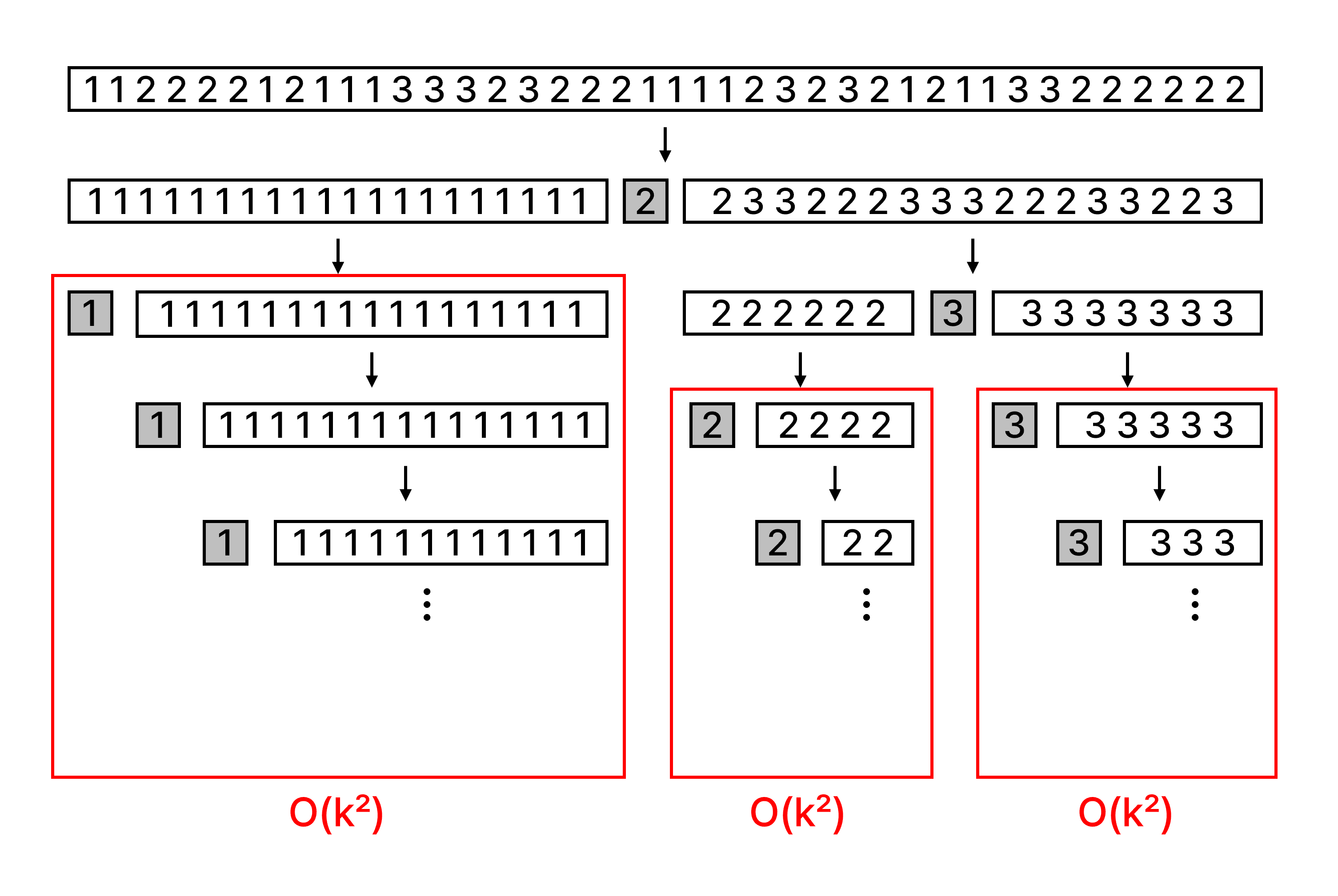 결국 전체 배열을 정렬하는데 의 시간이 걸리게 됩니다. 이렇게 균형이 맞지 않는 원인에는 크게 두 가지가 있습니다.