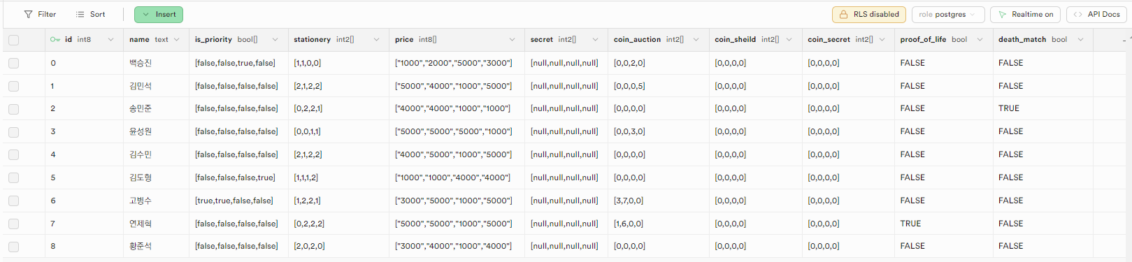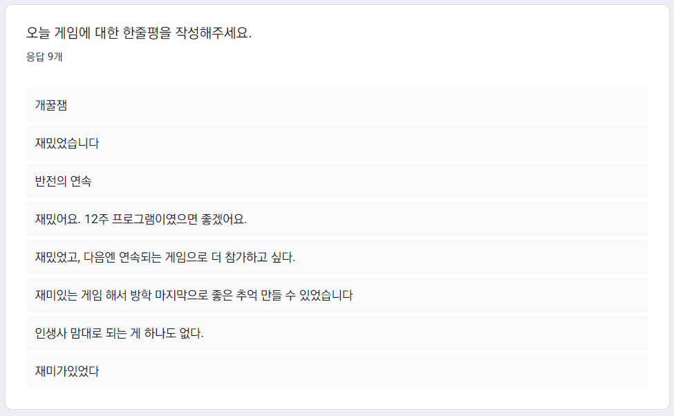 그 외에도 많은 돌발 상황들을 미리 생각하고 대비하기 위해 노력했습니다. 예를 들어 학용품의 개수가 플레이어 수에 따라 정해져 있는 게임 특성상 일부 플레이어 불참시 진행이 불가능합니다. 따라서 1, 2명이 불참하더라도 바로 진행할 수 있도록 학용품 개수를 모두 설정해놓았습니다.