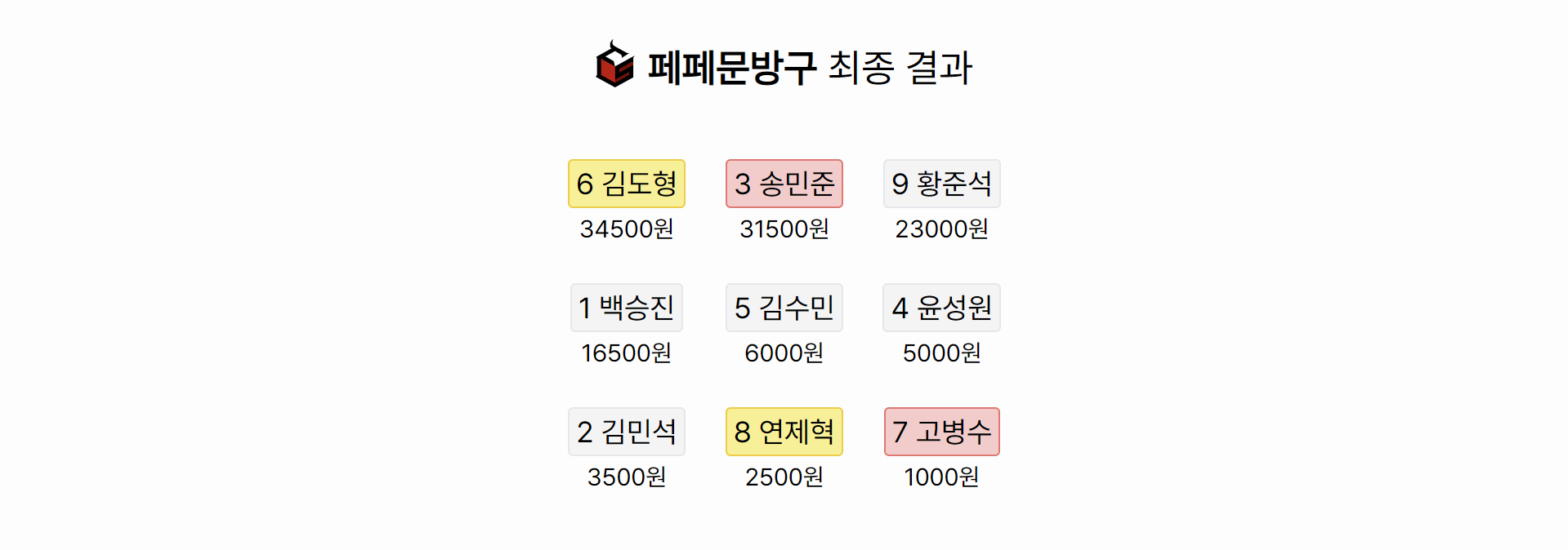 [6 김도형] 플레이어가 34500원으로 가장 많은 돈을 벌어 1등을 차지했습니다. 이게 어떻게 된 일일까요?