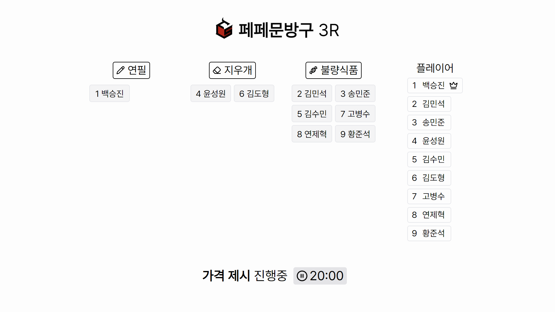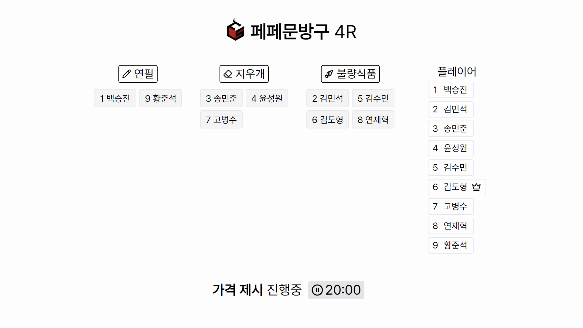페페문방구는 경매를 통해 학용품을 얻어, 최대한 많은 수익을 획득하는 게임입니다.