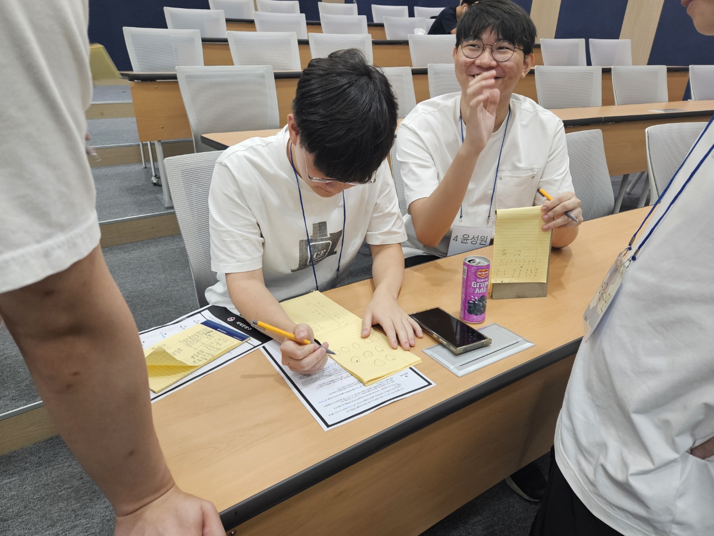 플레이어 순번은 명찰에 적혀져 있어 게임룸 입장과 함께 확인하게 되지만, 그 순번의 중요도는 룰 공개 이후에 처음 알게 됩니다. 이 순번은 우선권 경매, 학용품 선택 등 게임의 거의 모든 과정에 관여하기 때문에 연합 과정에서 가장 중요한 고려 대상입니다. 플레이어들은 룰 이해 시간을 약 10분 정도 가진 뒤 파트너를 찾아 돌아다니기 시작했습니다. 곧 플레이어 번호를 기준으로 세 팀이 구성되게 됩니다.